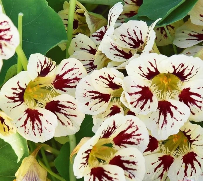 Семена настурции обыкновенной «Мэджик Стар» (Tropaeolum majus Nanum) сеют в мае сразу на постоянное место по 3-5 штучек в лунку. Растение любит тепло, влагу и хорошую освещенность. В жаркую погоду культуру обязательно следует поливать. Цветет настурция «Мэджик Стар» с июня до сентября разноцветными цветочками среднего размера. Лепестки большую часть лета белые с красными прожилками, но к моменту отцветания приобретают розоватый оттенок. Растение используют для оформления переднего плана смешанных цветников, бордюров, создания групповых посадок, выращивания в садовых вазонах.
