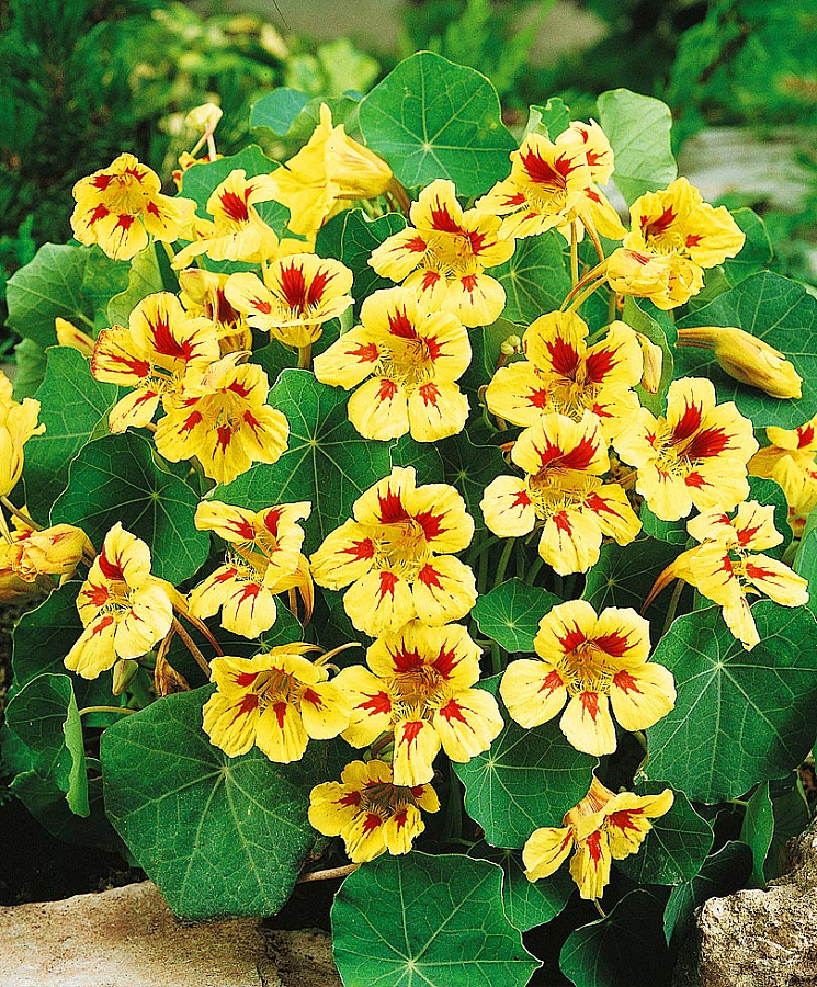 Окраска цветка : Кремово-желтая с красными пятнами в центре