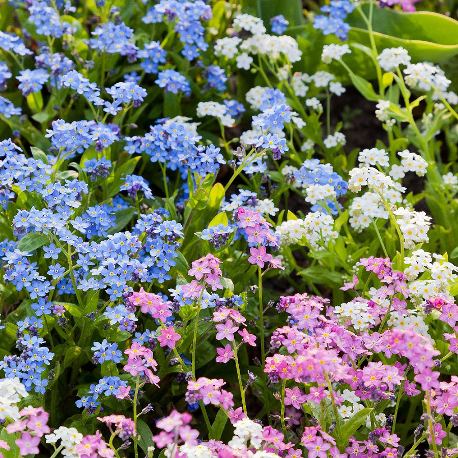 Семена незабудки "Альпийская Смесь" сеют сразу в открытый грунт в мае — июне или под зиму. Культура предпочитает тень. Именно на тенистых и полутенистых местах она может цвести до 40-45 дней, начиная с конца мая. Солнечные участки тоже пригодны для ее выращивания, однако в этом случае время цветения сокращается до двадцати дней. Высота растения достигает до 25-30 см. Цветочки мелкие, очень красивые, окрашены в розовые, голубые, белые, синие цвета. Незабудка "Альпийская Смесь" отлично смотрится не только в цветниках, но и уличных вазонах, и балконных ящиках.