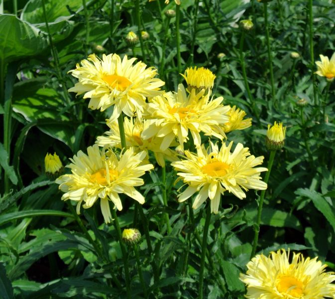 Рассаду нивяника (беленницы) наибольшего Goldsmith лучше всего высаживать в первой половине весны либо в конце осени на солнечные участки. Почва многолетнику подходит плодородная, умеренно влажная. Высота взрослого кустика около 60-70 см. Зацветает нивяник наибольший Goldsmith в июне. Его соцветия – это крупные махровые шапки из нежно-желтых лепесточков, края которых немного рассечены. Наиболее эффектно этот многолетник смотрится в рабатках, миксбордерах, групповых посадках на фоне газона и декоративных кустарников. Сорт подходит для выращивания на срез.