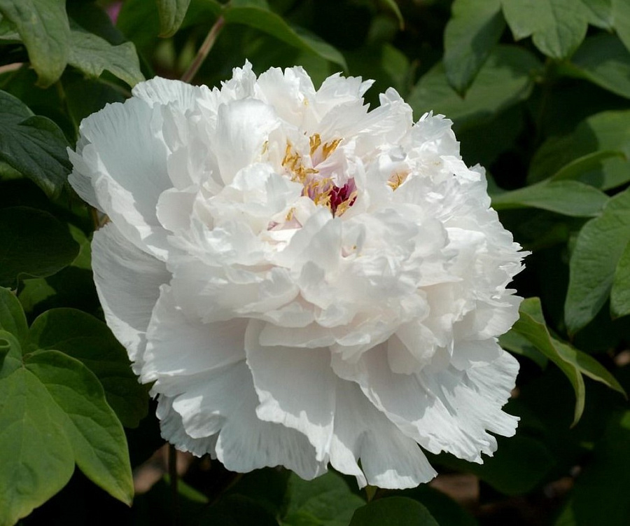 Саженцы пиона древовидного Fragrant Jade (Ароматный нефрит) Один из популярных китайских сортов древовидного пиона. Его крупные, махровые цветки раскрываются, белоснежно белыми цветками с желтым сердечком. Их легкий аромат, очень приятный. Этот цветущий кустарник в зрелом возрасте представляет собой захватывающее зрелище, заслуживающее особого расположения в саду. Длинные стебли с темно зелеными, тонкими листьями и крепкими ветвями. Древовидный пион открывает всю свою красоту, распуская пышные бутоны. Их лепестки удивляют нежностью и тонкостью, а также привлекают взгляд необычной окраской. Древовидные пионы обладает не сильным, но приятным и нежным ароматом. В отличие от травянистого пиона стебли такого растения в осеннее время не увядают, а с каждым годом разрастаются все больше, и со временем кустик приобретает полушаровидную форму. Характерные особенности растения:
