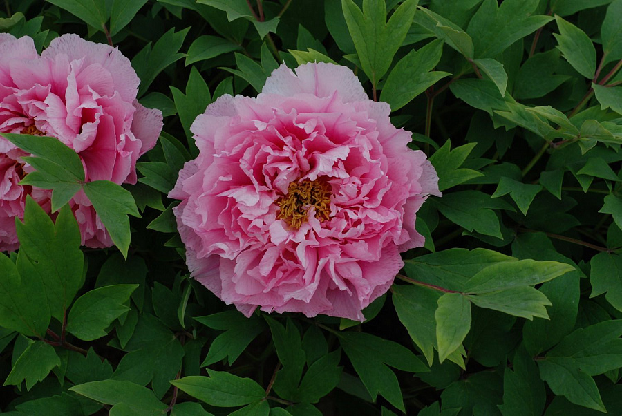 Саженцы пиона древовидного Герои (Paeonia Suffruticosa) можно полюбить уже только за невероятный аромат от распустившихся бутонов. Еще одно преимущество – морозостойкость. Пион предпочитает расти на солнечных участках и хорошо дренированном грунте. Кусты высокорослые и раскидистые, высота до 1,2 метров. Все растение усыпано крупными соцветиями. Цветки насыщенного розового оттенка, махровые. Лепестки – с серебристым отливом. Диаметр соцветий – от 13 до 15 сантиметров. Зацветают пионы в конце мая и цветут до июня. Продолжительность цветения небольшая, отцветают бутоны через две недели.