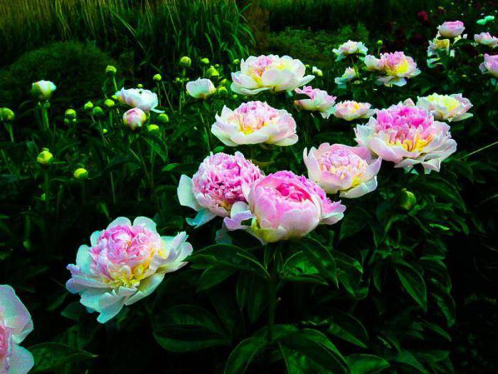 Саженцы пионов Распберри Сандей (Raspberry Sundae) высаживают как на переднем плане цветника, создавая акцент на теплых красках. Высотой куст средний около 70-90 см в длину. Цветок состоит сразу из желтого, белого и розовых оттенков. Все цвета нежные и гармонично дополняют друг друга. Лепестки разные: нижний ряд крупный, серединка состоит из небольших лепестков сильно махровая и венец средний. Необычность бутона не единственное, что привлекает внимание, ведь в диаметре он может достигать до 18 см. После пересадки саженцев пионов "Распберри Сандей" сортовые качества проявляются на 2-3 год.