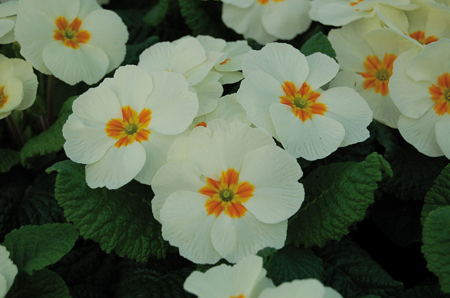 Примула Пионер Вайт - это великолепное растение, которое поразит вас своей изысканной красотой и нежностью. Ее бело-оранжевые цветы радуют глаз в течение двух месяцев, создавая удивительный контраст с зелеными листьями. Высота этого растения составляет 10-15 см, что делает его идеальным для украшения горшков, клумб и рабаток.
