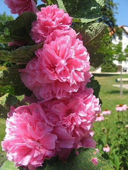 Шток-роза (мальва) пленифлора роуз - это изысканное растение с прекрасными розовыми цветками, которые радуют глаз в течение летних месяцев. Ее стебель прочный и прямой, достигает высоты до 80 см, что делает ее идеальным выбором для групповых посадок или одиночных композиций. Листья этого растения зеленые и красиво контрастируют с яркими цветками.