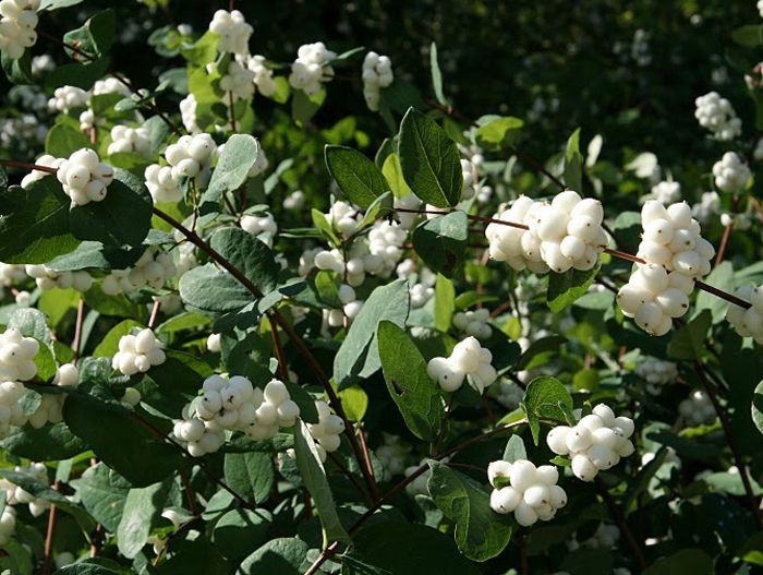 Растение в высоту достигает двух метров. Оно имеет мелкие розовые цветы, которые затем превращаются в живописные белые плоды. Причем, плодоношение весьма обильное.