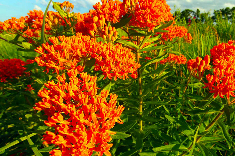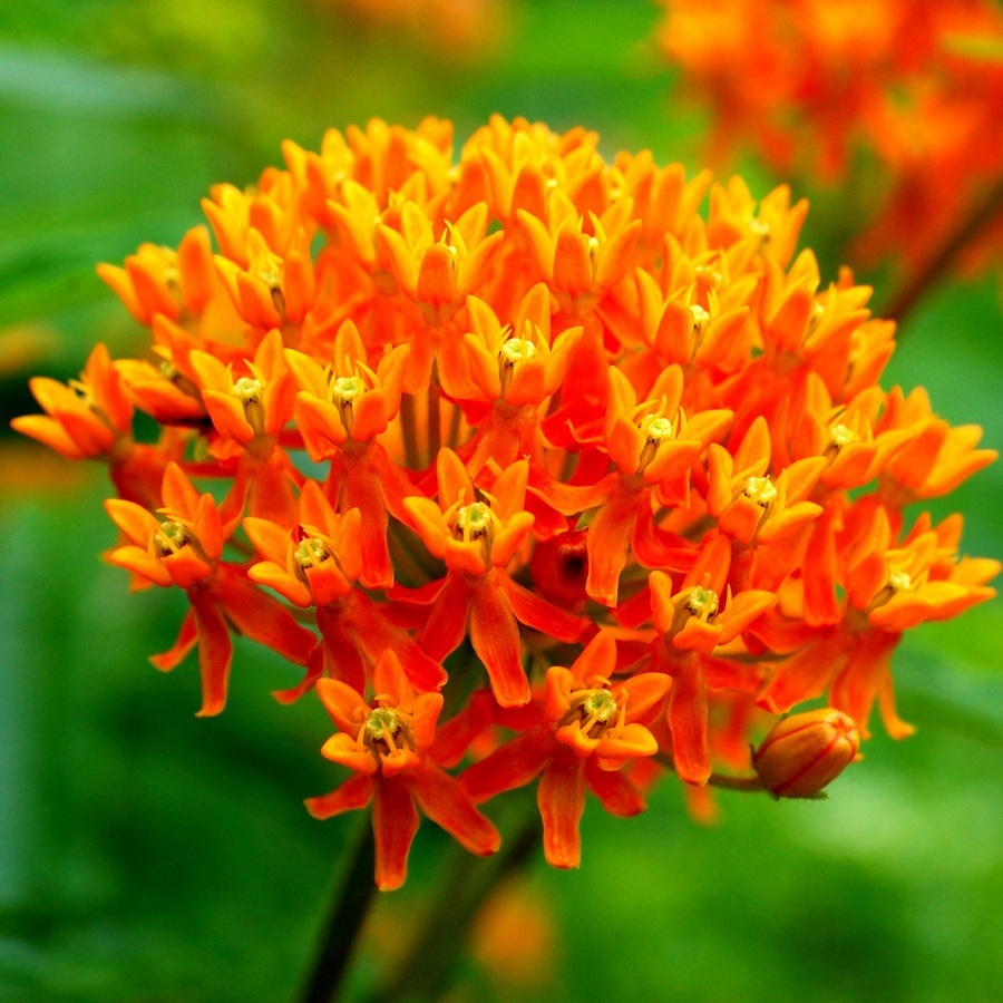 Ваточник клубневой - это удивительное растение с ярко-оранжевыми цветками, которые привлекают внимание своей красотой. Его стебель достигает высоты до 50-70 см, а диаметр цветка может быть также до 50-70 см. Листья ваточника клубневого имеют зеленую окраску и необычную форму, что делает его еще более привлекательным для глаз.