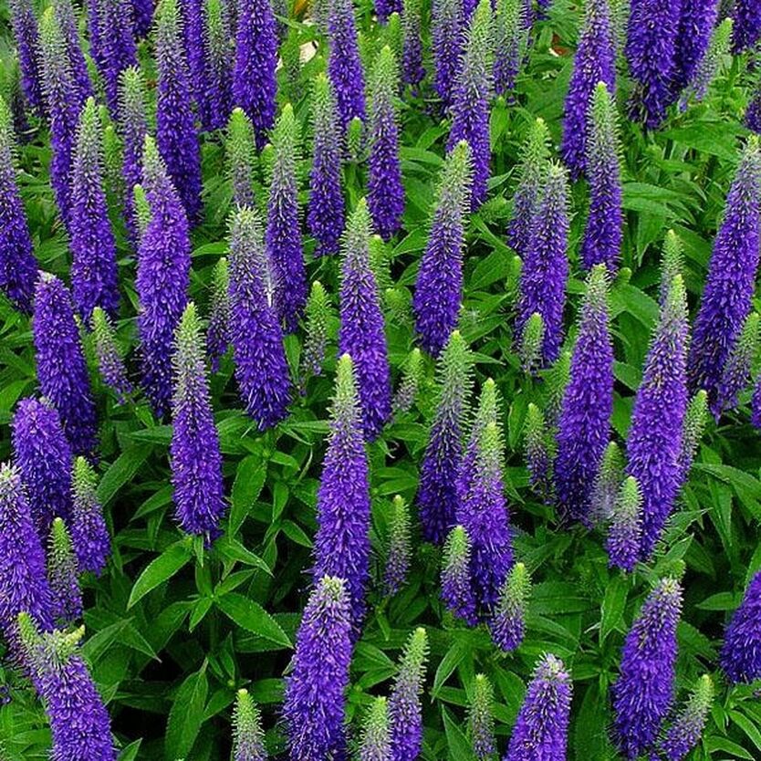 - Цветы насыщенного синего цвета, собраны в густые кистевидные соцветия длинной до 10 см. Цветение для вероники характерно обильное и достаточно длительное.