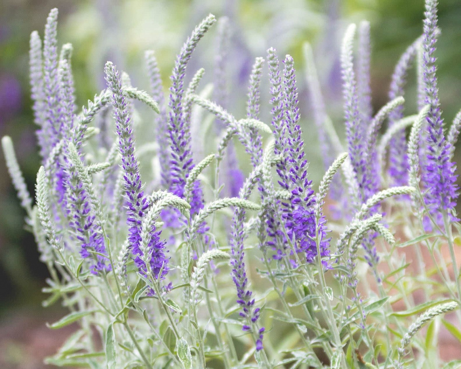 Рассада вероники Седая (Incana) имеет небольшие листики, которые расположены на войлочно-опушенных крепких стеблях. В середине июня появляются темно-синие цветы, которые представляют собой колосовидную форму. Цветение радует приблизительно около 40 дней. В высоту растет 25-35 см. Достоинства растения: - подходит для посадки как на солнечных участках, так и в полутени - не боится заморозков - хорошо переносит засуху Семена вероники Седая рекомендуется посадить на дренированной, рыхлой почве. Поливать нужно часто, однако, не терпит переизбытка влажности. Используется в цветниках различного типа.