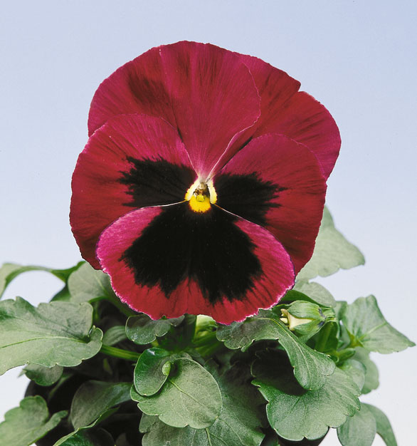 Виола крупноцветковая колоссус роуз виз блотч - это изысканное растение с темно-розовыми цветками, размером от 7 до 9 см. Ее стебель достигает высоты 10-12 см, что делает ее идеальным выбором для групповых посадок. Листья этой виолы имеют уникальную форму и яркий зеленый оттенок, что придает ей особый шарм.