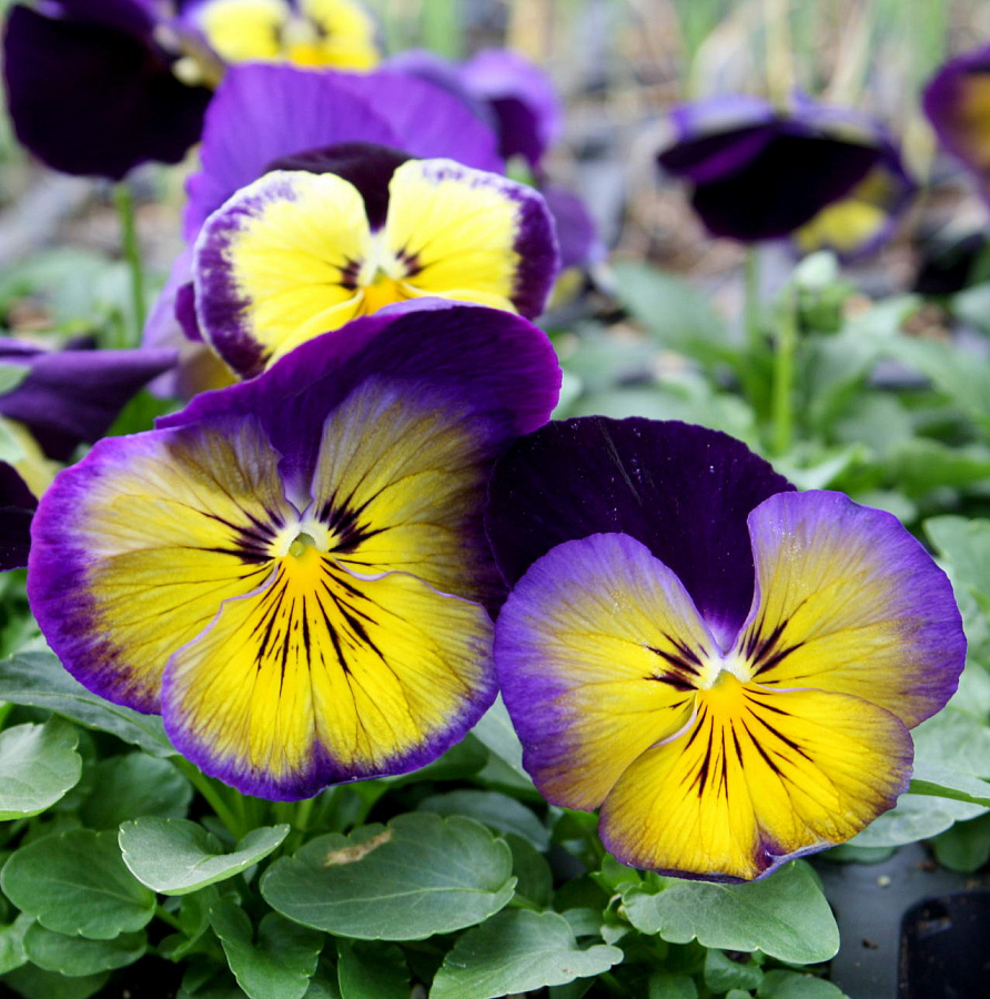Виола крупноцветковая матрикс миднайт глоу - это волшебное растение, которое привнесет неповторимую атмосферу загадочности и красоты в ваш сад. Ее фиолетово-желтые цветы размером 8-10 см будут радовать вас в течение июня и июля, создавая удивительный контраст с зелеными листьями. Высота растения составляет 15-20 см, что делает его идеальным для групповых посадок.