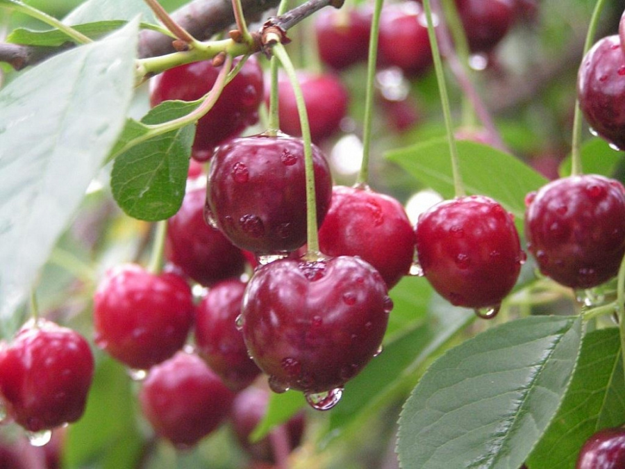 Саженцы вишни Быстринка представляют собой невысокое дерево с шаровидной кроной средней густоты. Она формируется из прямых побегов. Листья растения имеют яйцевидную форму с заостренным верхом. По цвету они матовые, с нечетким жилкованием и слегка загибаются вниз. Цветение сорта приходится на середину мая, а созревание плодов на середину июля. Плоды начинают появляться только на 4 год после посадки. Сорт Быстринка относится к сортам с универсальным назначением. Он активно используется в пищевой промышленности, также его часто можно встретить на участках садоводов любителей. Помимо этого саженцы разводят для развития селекции и усовершенствования вкусовых качеств плодов.