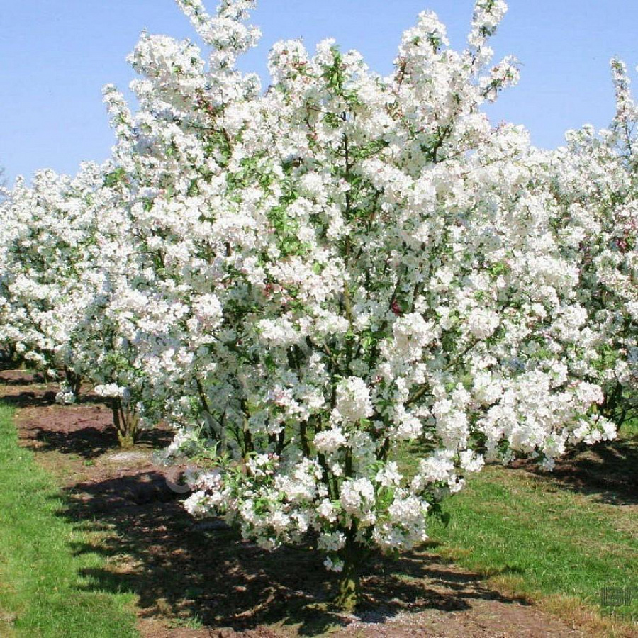 Саженец яблони декоративной Эверест (Everest) вырастет в компактное дерево высотой 4-6 метров, которое хорошо впишется в различные ландшафтные композиции, а также применимо для озеленительных работ на средних и больших площадях. Крона рыхлая, широкопирамидальная, в диаметре до 5 метров. Листва матово-блестящая тёмно-зелёного цвета. В мае цветёт белыми с розовым цветками размером около 3 см. Плоды округлые или чуть сплюснутые размером в 2-2,5 см, оранжево-красные со слегка различимыми полосками. Рекомендуется высаживать на солнце, в защищённом от ветра месте. Необходима плодородная почва.