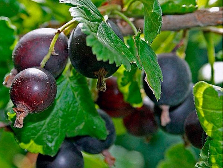 Саженцы йошты Моро отличаются в первую очередь размерами ягод — они сравнимы с вишнёвыми. Цвет у плодов очень тёмный, с плотной шкуркой, вкус мускатный. Важно, что созревшие ягодки не осыпаются, что удобно для тех людей, кто не всегда может вовремя появиться на участке для сбора урожая.